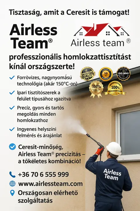 Az Airless Team®️ országosan vállal felülettisztítást, modern nagynyomású és soft-wash technológiával, gyorsan és biztonságosan.